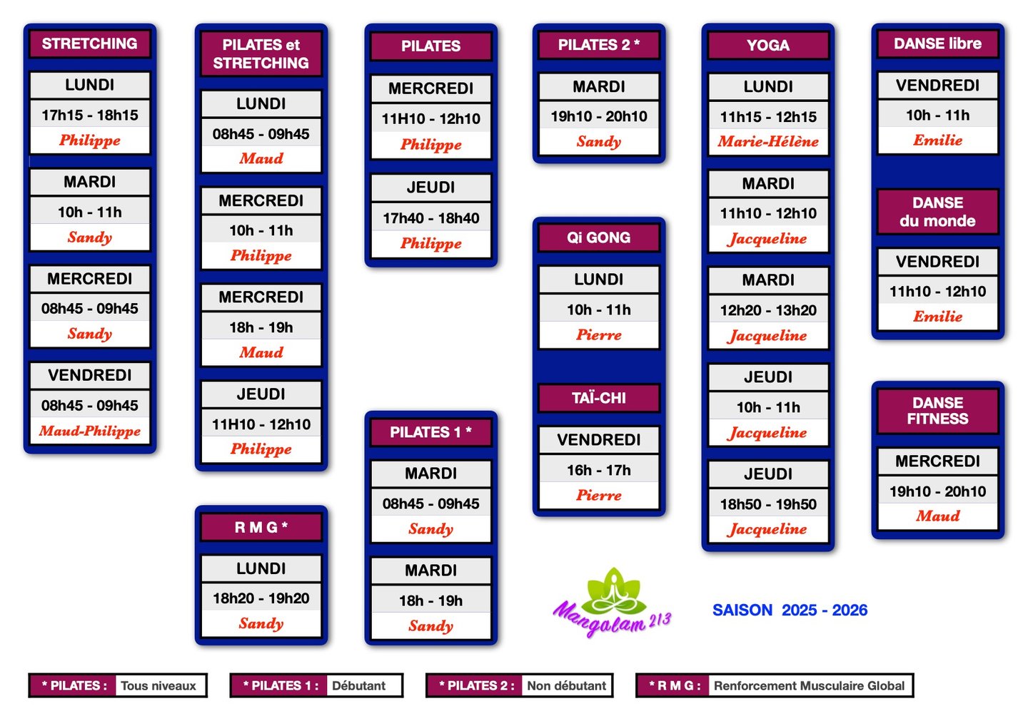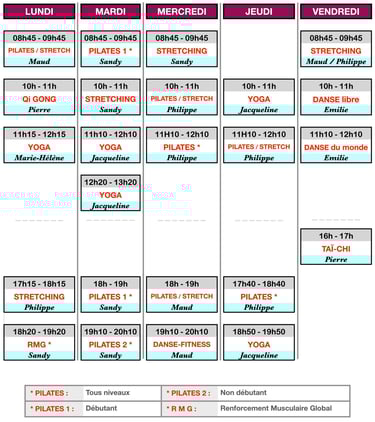HORAIRES DES COURS